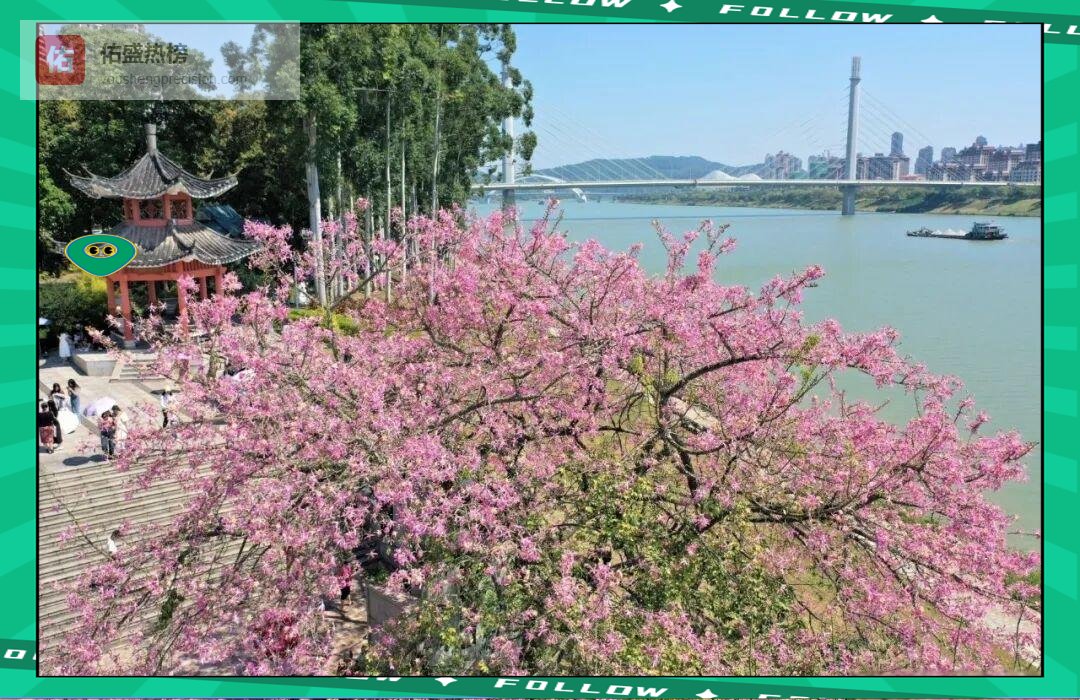 与快环、民族大道那些“排排站”的异木棉不同,这棵江边巨木树形开张如伞,花量密集得像被谁打翻的颜料。它无需任何滤镜,站在堤岸就能拍出“以江为幕、以天为顶”的纵深感,难怪镜头一开,朋友圈先火。