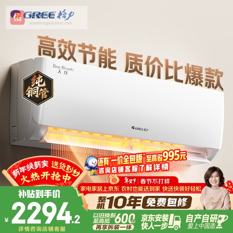 新一级节能效果卓越:采用新一级能效标准,显著降低家庭用电成本,让您享受舒适的同时,不用担心高昂的电费。