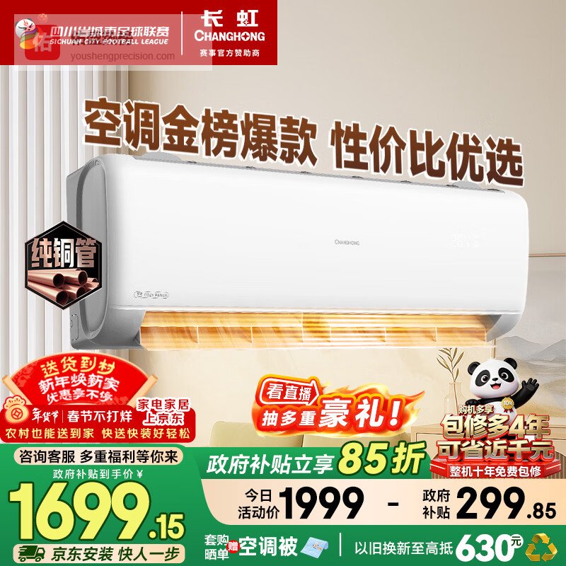 【京东自营】长虹空调大1.5匹新一级省电熊猫懒空调挂机纯铜管国家补贴以旧换新KFR-35GW/ZDC¥