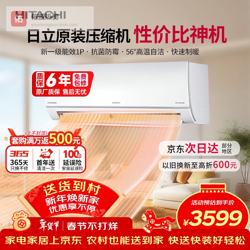核心优势:日立原装压缩机,制冷更静音,环保R32冷媒助你节能省电,让您在舒适的同时为地球尽一份力。