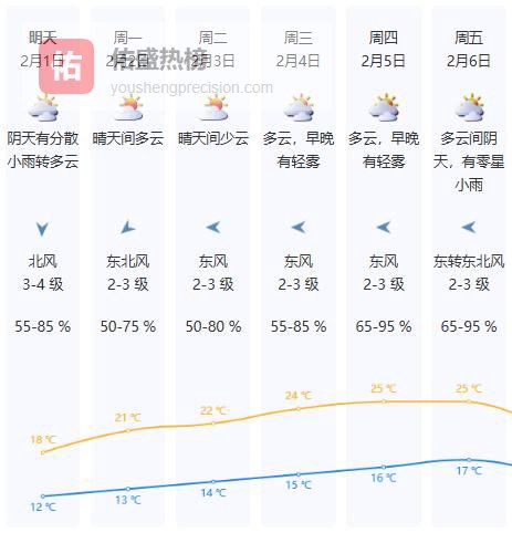 展望2月4-6日多云为主,湿度加大,气温继续回升,天气温暖。
