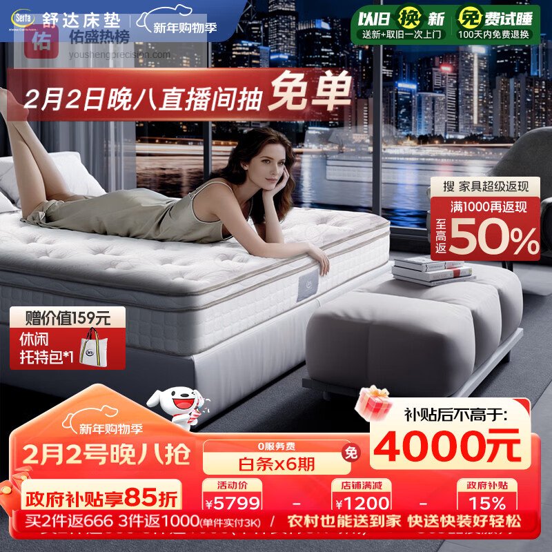 推荐入手:舒达香榭丽舍plus独立袋弹簧床垫1.8米
