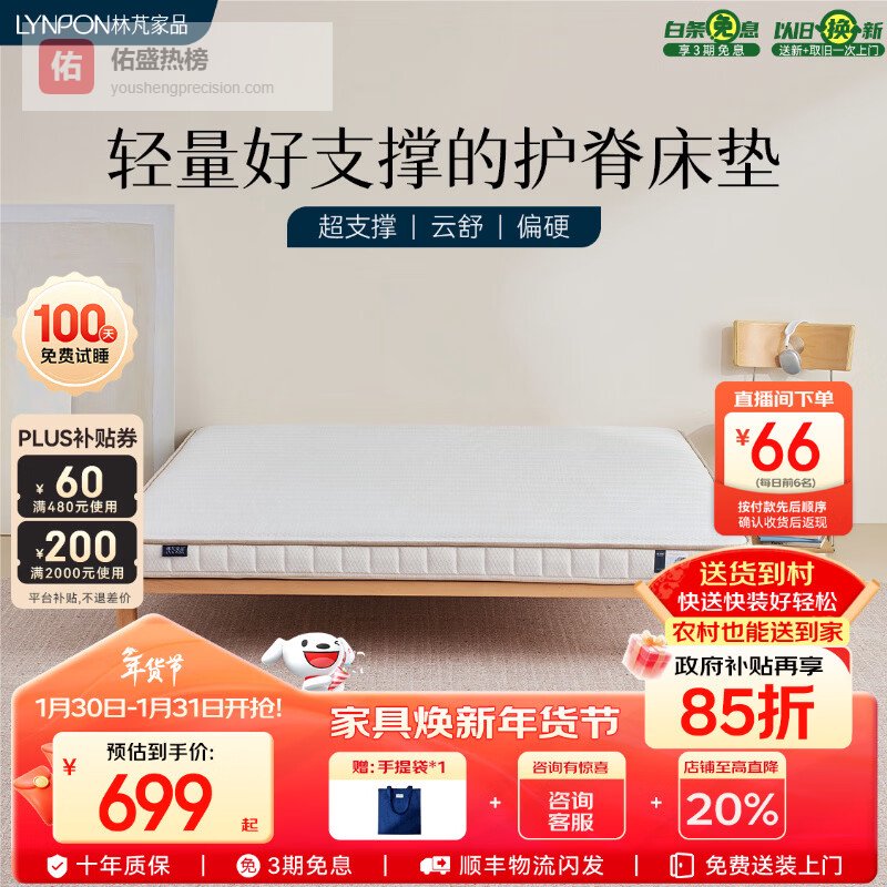 【品牌直营】林芃家品林芃云舒椰棕床垫天然乳胶垫可折叠榻榻米棕垫家用单人硬定制10cm护脊A6cm厚:¥