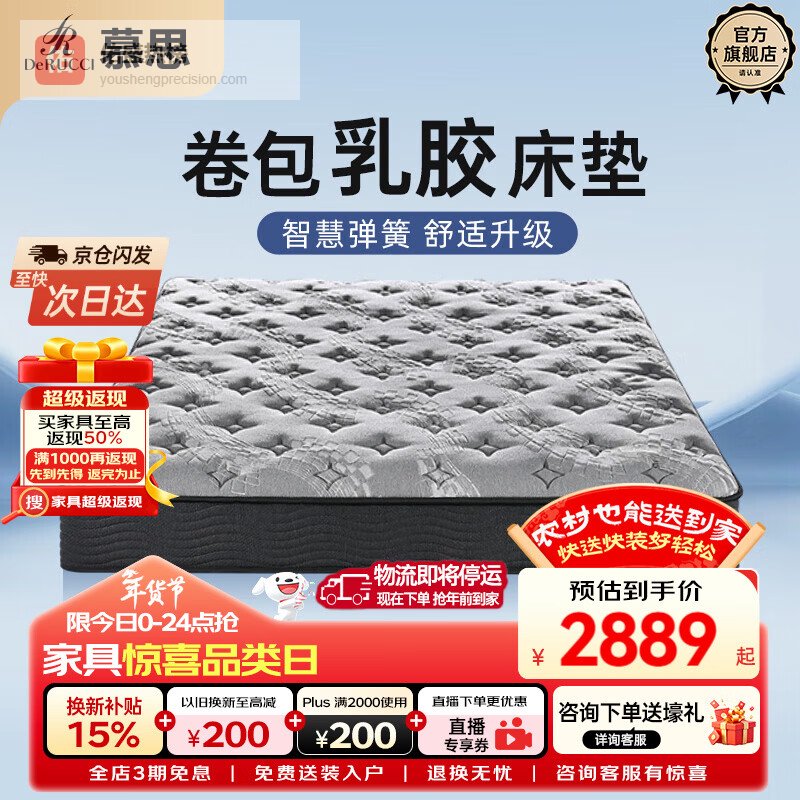 【京东自营】慕思天然乳胶卷包垫独立筒弹簧床垫子适中偏硬小黑盒1.8*2米适中偏硬¥
