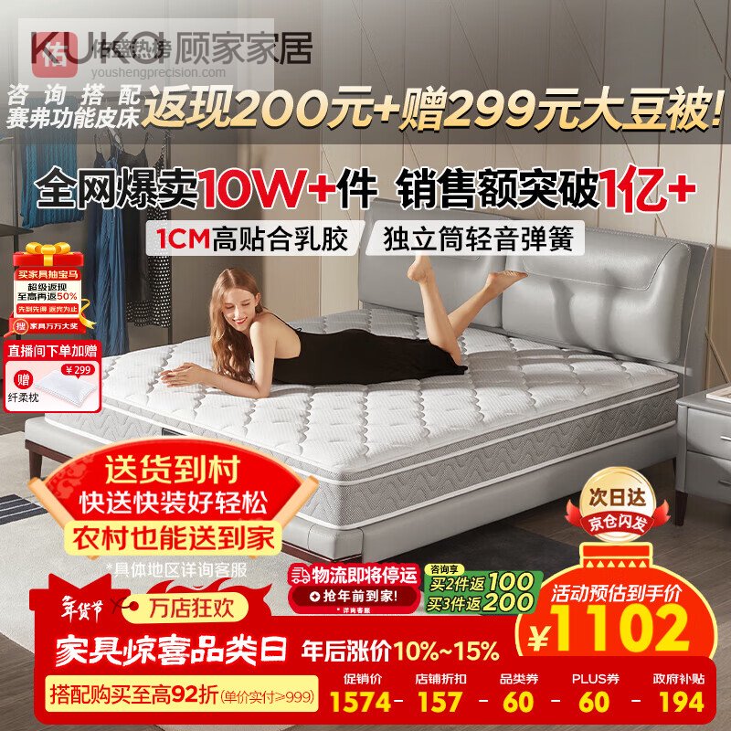 【京东自营】顾家家居京东家具天然乳胶床垫独袋弹簧席梦思梦想垫旗舰1.5x2米京仓闪发¥