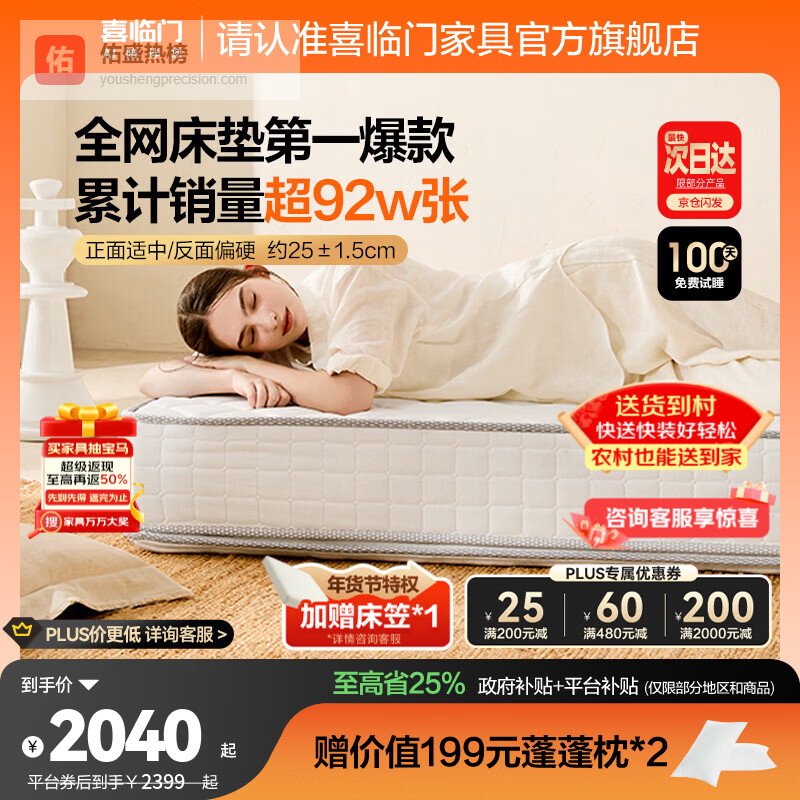 【品牌直营】喜临门白骑士床垫国家补贴加厚进口乳胶护脊黄麻独袋弹簧家用白骑士plus【指定尺寸闪送】1¥