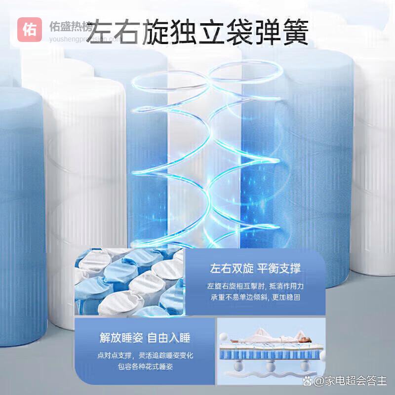 推荐理由:独立袋弹簧设计、舒柔释压层、阻菌阻螨面料