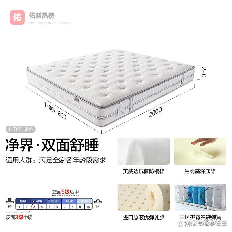 推荐理由:高效抑菌防螨、独立袋装弹簧、天然乳胶材料