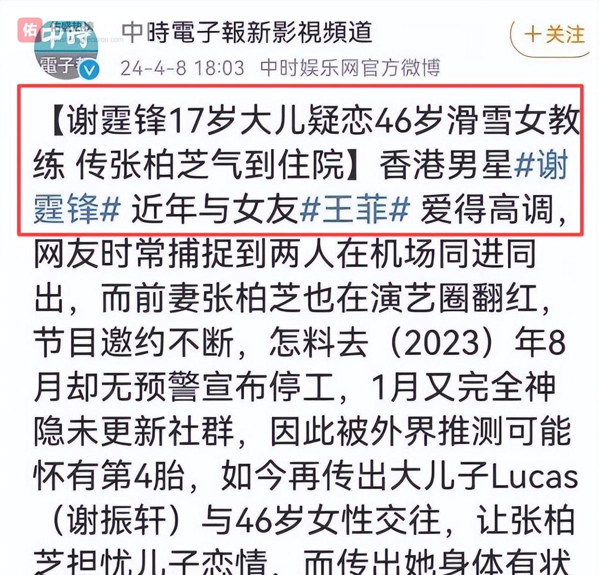 比谢霆锋更猛!张柏芝大儿子恋情疑似曝光,46岁阿姨,辣妹也不例外