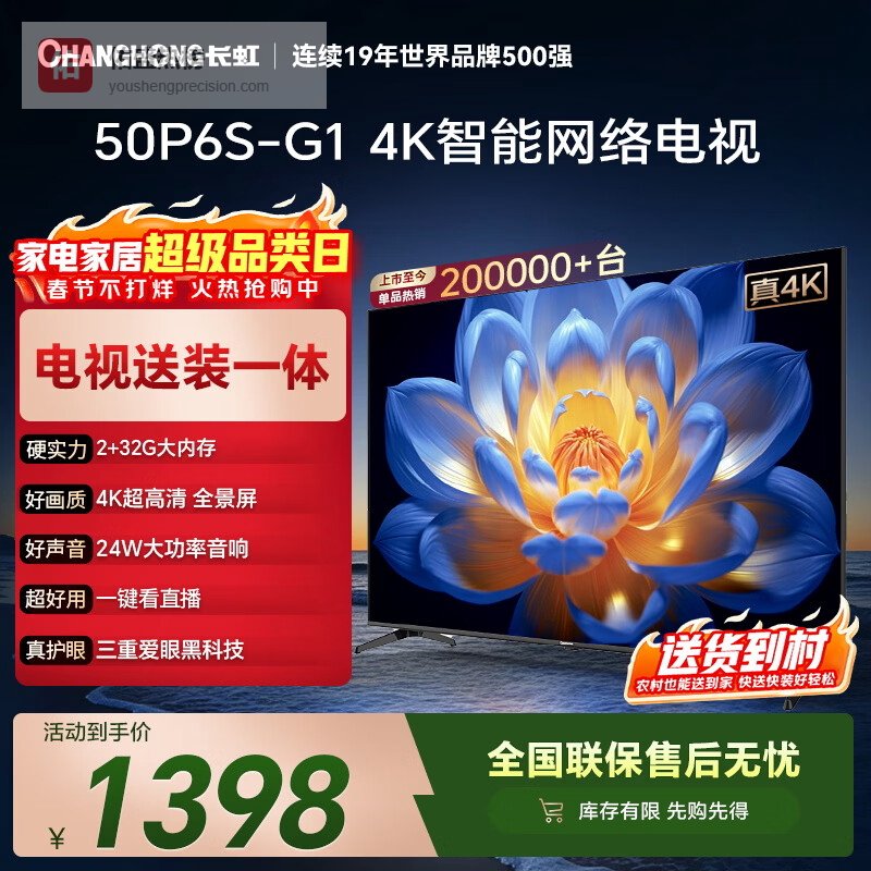 第二款:长虹4K智能电视50P6S-G1 50英寸包安装