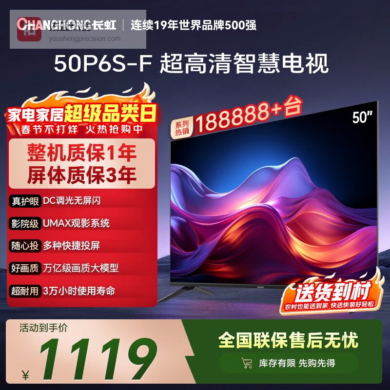 长虹电视机哪款性价比最高又好用?第一款:长虹50英寸P6S-F液晶电视机