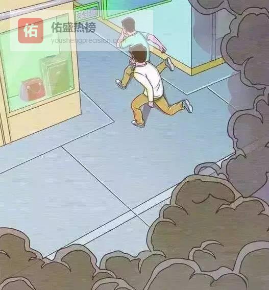 密闭呛烟:矿泉水浸湿布块捂口鼻,降低窒息风险。