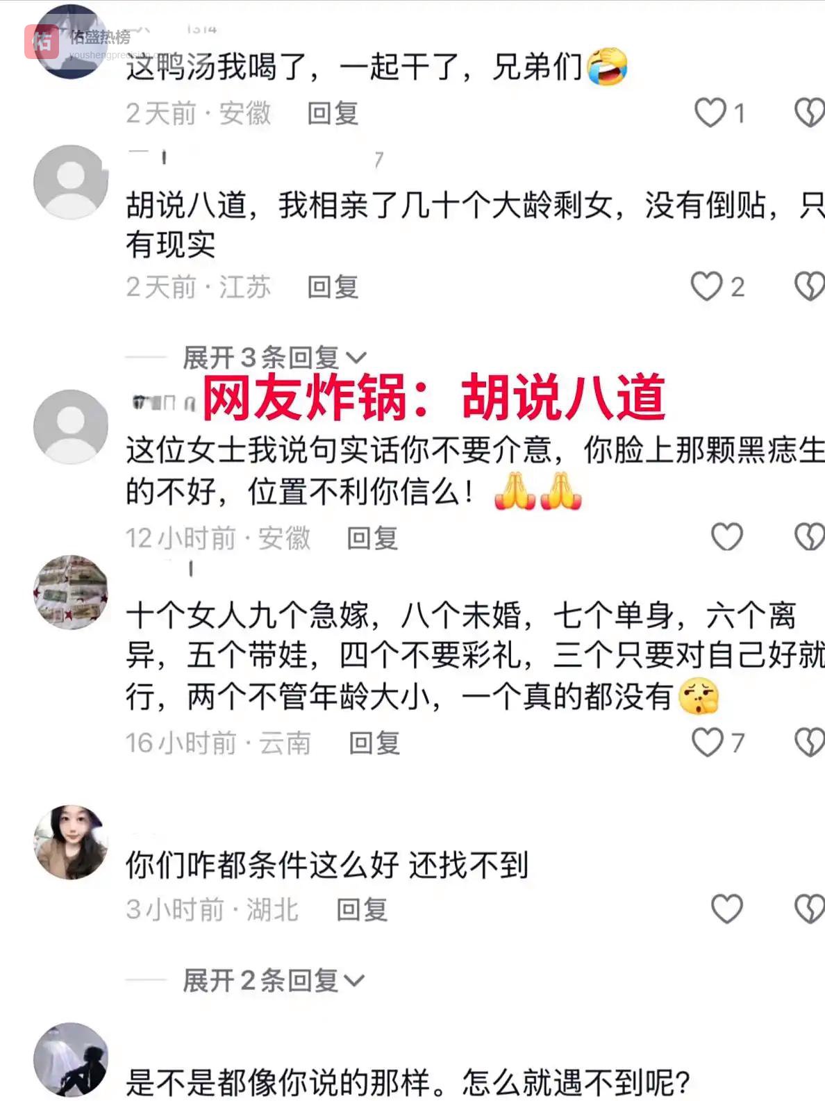 还存在着一些人,他们对女子进行讥讽,说道,信口开河,我去相亲了好多好多大龄剩女,可没有任何一个是愿意倒贴的呀,有的仅仅只是现实情况罢了,她们居然还想要高额彩礼,哪里会出现你所讲的这般好事呢!