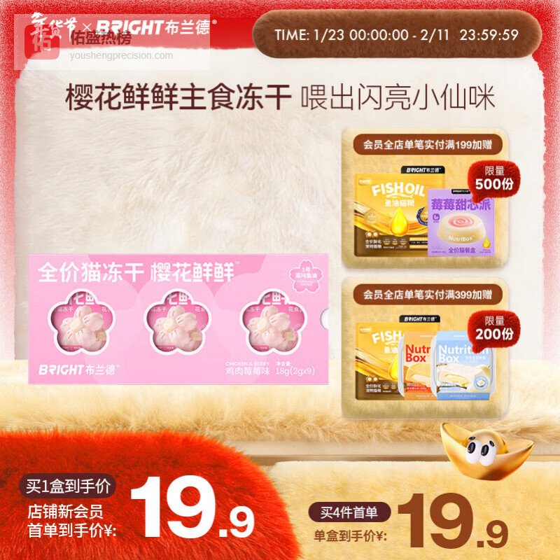 【京东自营】布兰德全价主食冻干樱花冻干成幼猫粮宠物零食高蛋白鸡肉味9包*1盒¥