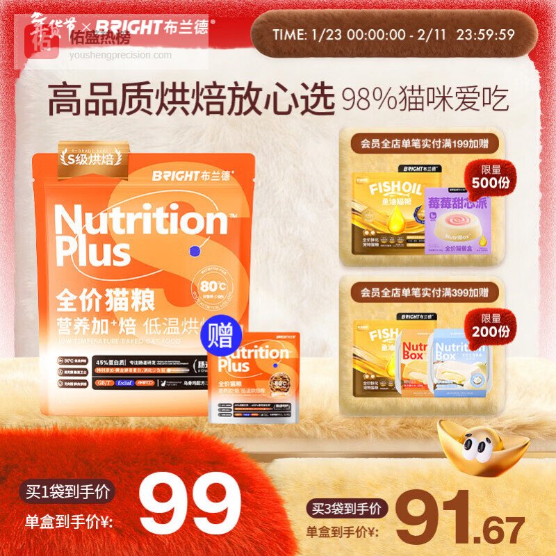 推荐理由:优质动物性原料、高消化率、添加益生菌
