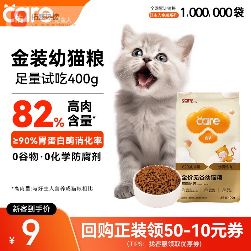 【京东自营】好主人金装好主人猫粮2.0成猫幼猫蓝猫英短通用【试吃装】金装幼猫400g¥