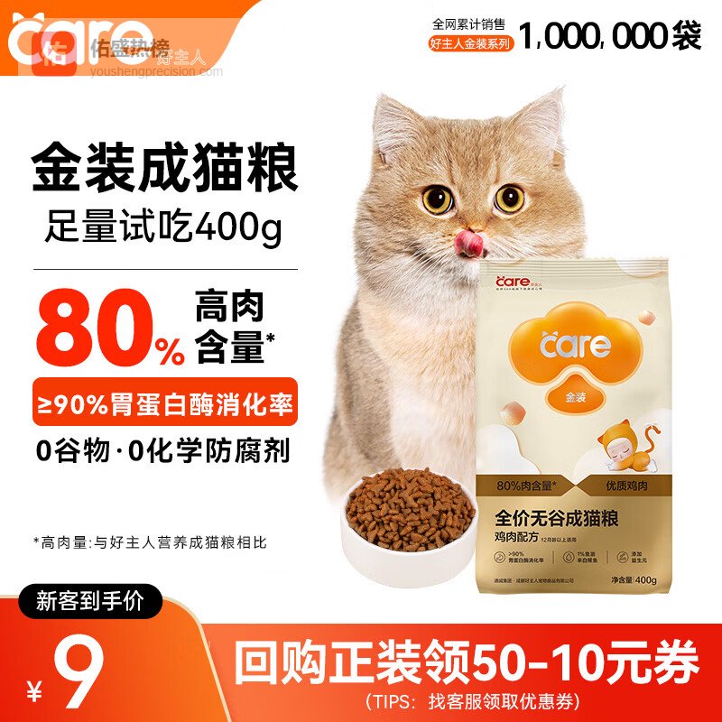 【京东自营】好主人金装好主人猫粮2.0成猫幼猫蓝猫英短通用【试吃装】金装成猫400g¥