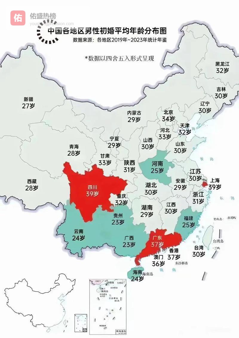 男的第一次结婚,全国平均三十岁零四个月。