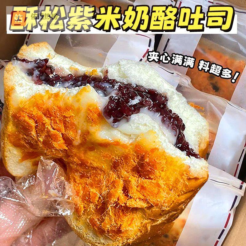 紫米肉松味面包夹心吐司当紫米的糯香遇上肉松的咸鲜,这款跨界组合带来了意想不到的味觉惊喜。采用新鲜蒸制的紫米作夹心,保留了完整的谷粒口感,咀嚼时能感受到爆珠般的趣味体验。表层洒满的黄金肉松不是粉末状碎屑,而是3cm长的丝状原切肉松,用料扎实到每口都能拉出细丝。