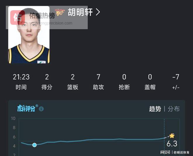 这样的表现也说明胡明轩的状态还是没有能够回暖,从当年的天之骄子总决赛的Fmvp到如今状态低迷,胡明轩的状态下滑可以说是非常之快,从上个赛季便早已有了苗头