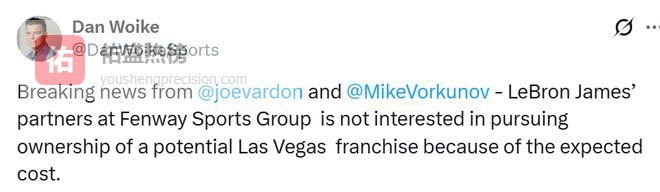 据两位直接了解芬威意图的消息源向The Athletic透露,詹姆斯自2011年起的商业伙伴、同时拥有波士顿红袜与英超利物浦的芬威体育集团,目前无意竞标拉斯维加斯的扩军队。其中一位未获授权公开表态的消息源称,这家全球体育投资公司退出,是因为预期成本过高——据报道,联盟对每支扩军球队收取的加盟费最高可达80亿美元。