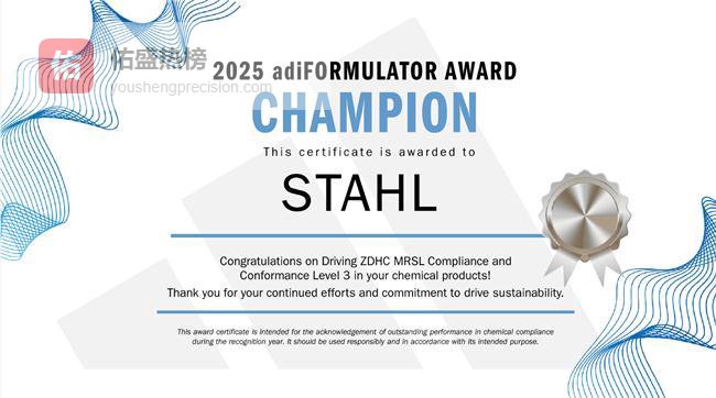 adiFORMULATOR Award由全球运动用品巨头阿迪达斯设立,每年评选一次,专门授予在ZDHC(有害化学物质零排放)体系推进中做出突出贡献的化学品供应商。评选标准涵盖MRSL(生产限用物质清单)合规等级、产品透明度、创新可持续配方占比及供应链协同效应等核心维度。该奖项不仅是对供应商技术实力的权威认证,更代表着阿迪达斯对其长期战略伙伴关系的高度认可。