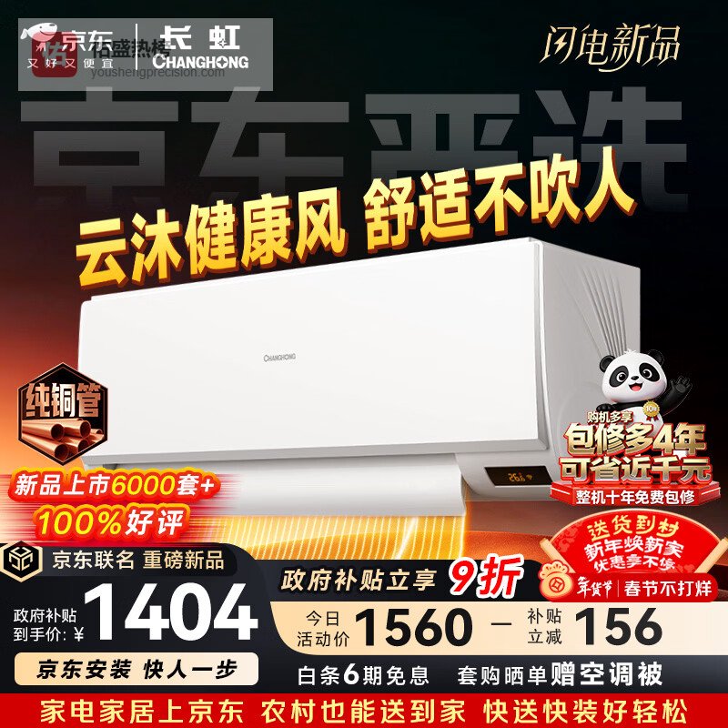 【京东自营】长虹空调京东严选京小宅大1匹新一级能效超省电冷暖纯铜管国家补贴卧室挂机KFR-26GW/¥