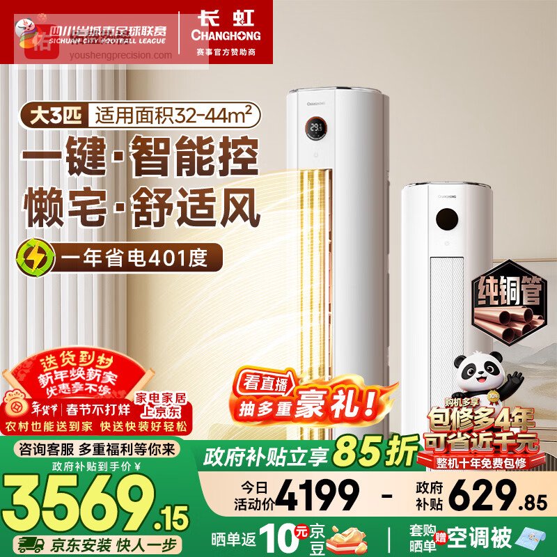 【京东自营】长虹空调大3匹熊猫懒新一级省电纯铜管冷暖立式空调柜机国家补贴以旧换新KFR-72LW/Z¥