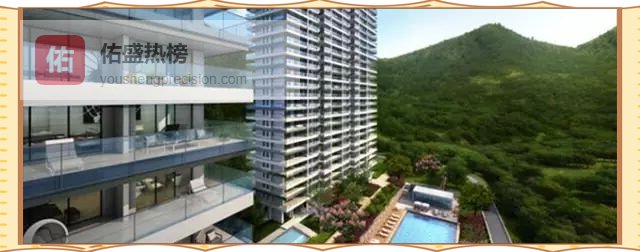 4.1 > 背山观海的气势两栋31层高层背靠龙首山,面向小东海与鹿回头高尔夫;65%绿化率把山体直接借进窗景,“坐可捏龙首山势,起可镇东海水镜”成为最豪气的广告语。