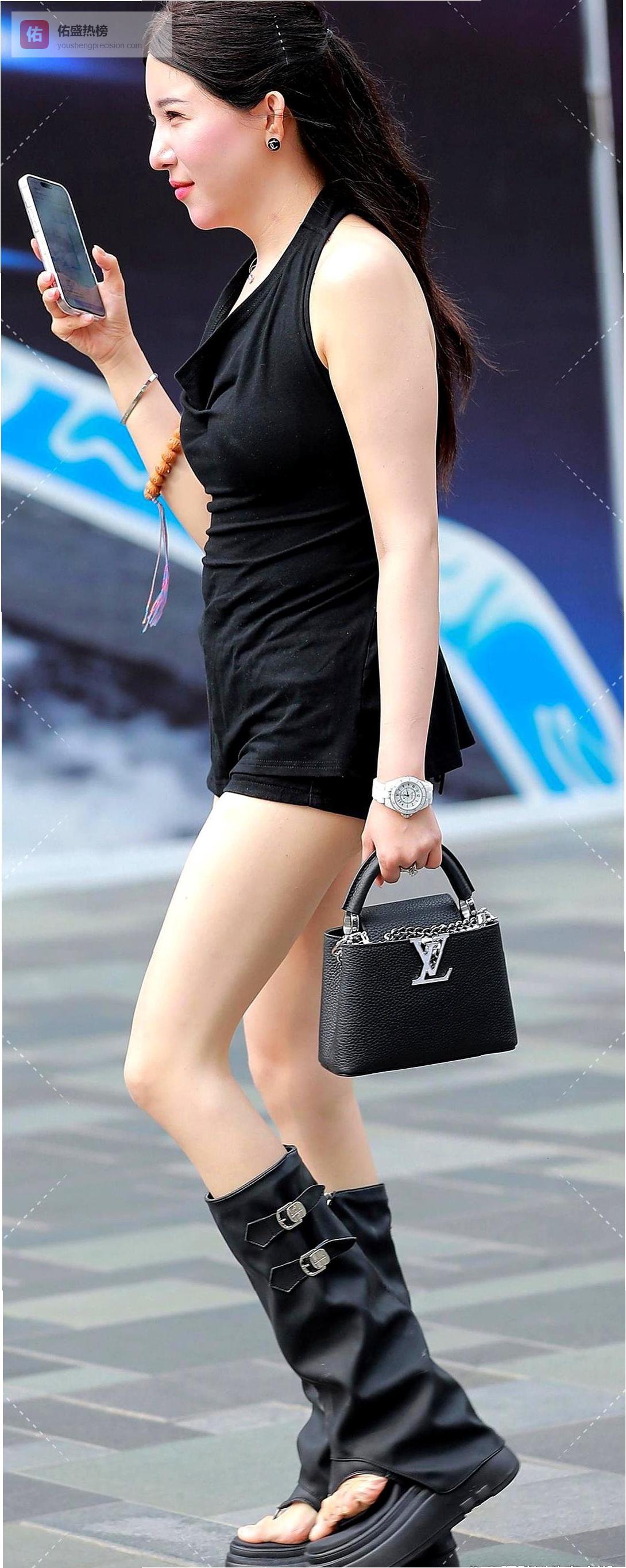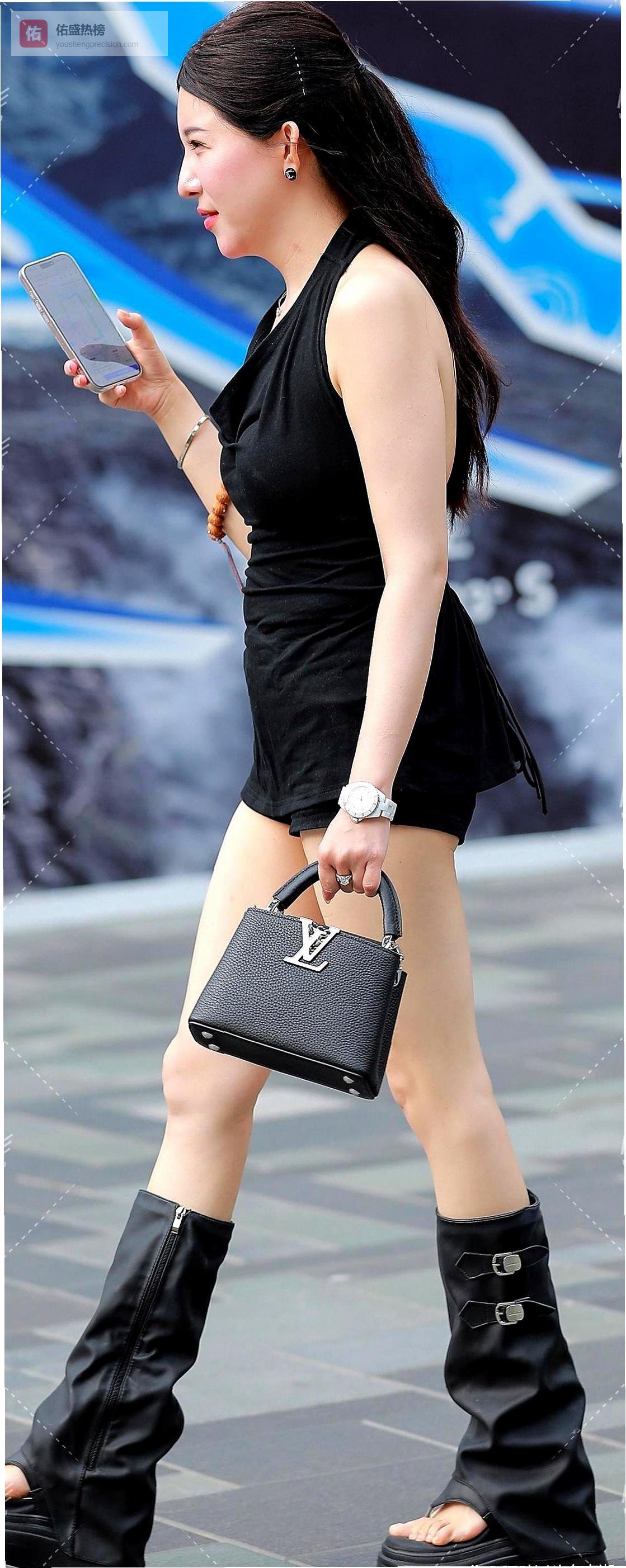这套穿搭最厉害的地方,就是把不同风格完美融合。挂脖背心的性感、短裤的休闲、长靴的张扬,都被黑色这个万能色系完美hold住。每个单品单独看都很出彩,组合在一起更是1+1>2的效果。