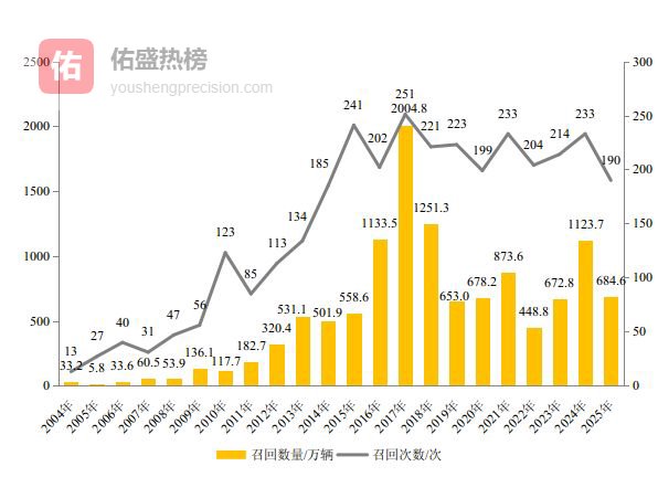 1.2025年汽车召回总量超684万辆