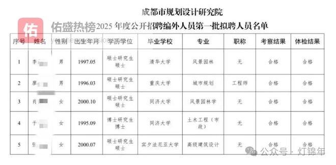 最近看到成都市规划设计院公布了2025年度拟聘编外人员名单,学历之高令人震撼;
