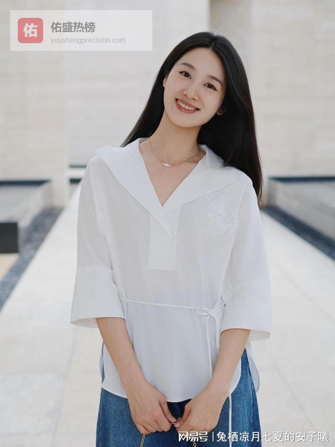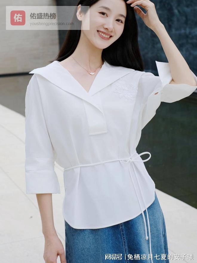 这套 look 的核心,是这件白色系带衬衫。大翻领 V 领设计,恰到好处地露出纤细肩颈,显瘦又显气质,不会过分暴露,却自带清冷氛围感;胸前精致刺绣增添细节感,让简约的白衬衫多了几分精致;腰部抽绳系带可以自由调节松紧,精准掐住腰线,拉长比例,小个子也能穿出大长腿;七分袖 宽松版型,透气又藏肉,对溜肩、宽肩都很友好,重庆春日忽冷忽热的天气里穿也刚好合适,既能应对办公室的空调风,又能在午后的阳光下自在舒展。