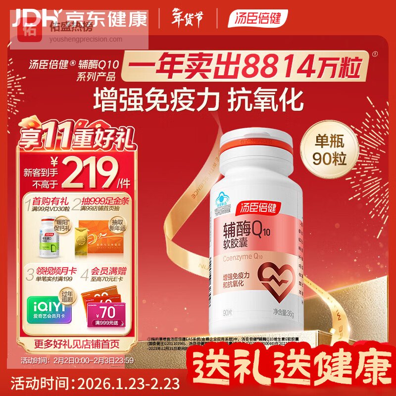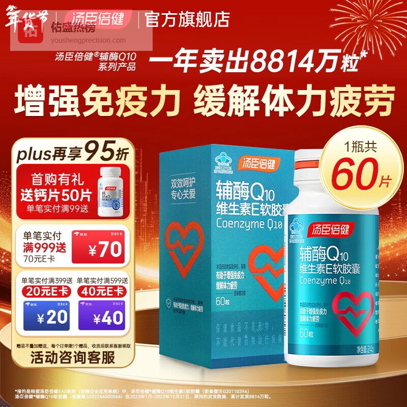 【品牌直营】汤臣倍健辅酶Q10维生素E软胶囊男女中老年人辅助增强免疫力缓解体力疲劳辅酶Q1060粒*¥