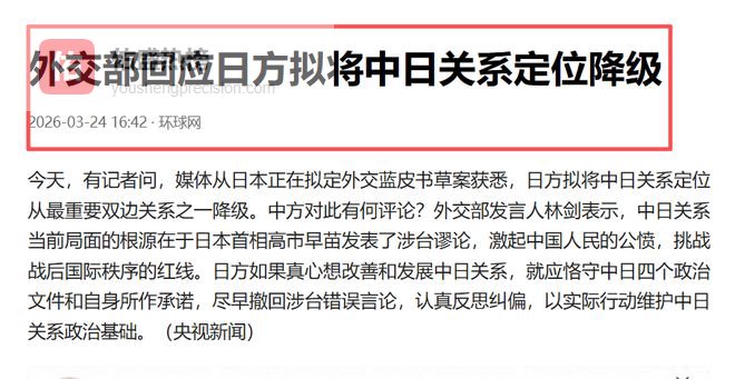 就在闯馆事件发酵的同一天,另一则消息同样值得高度警觉:日本政府正在审议的年度外交报告草案,拟将中日关系定位从"最重要的双边关系之一"降级为"重要邻国",仅保留"战略互惠"表述。