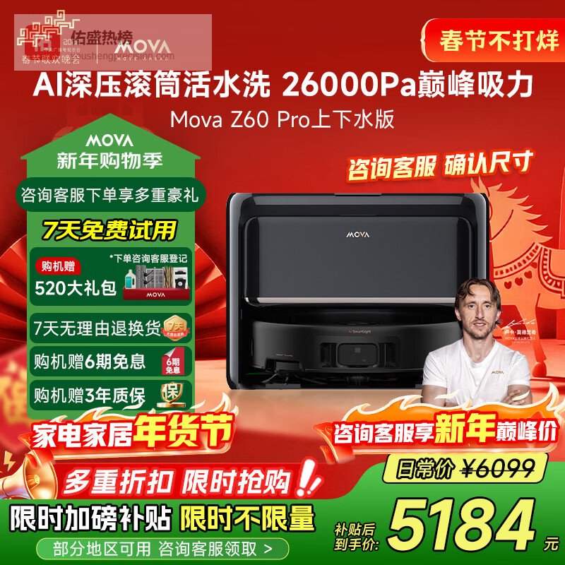 【京东自营】Mova扫地机器人Z60pro扫拖一体扫拖洗烘一体机家用自动清洗集尘热水洗拖布上下水¥