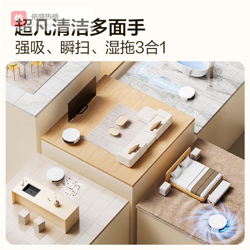 三合一清扫功能:一机多能,完美融合吸尘、扫地与湿拖,省时又省力。