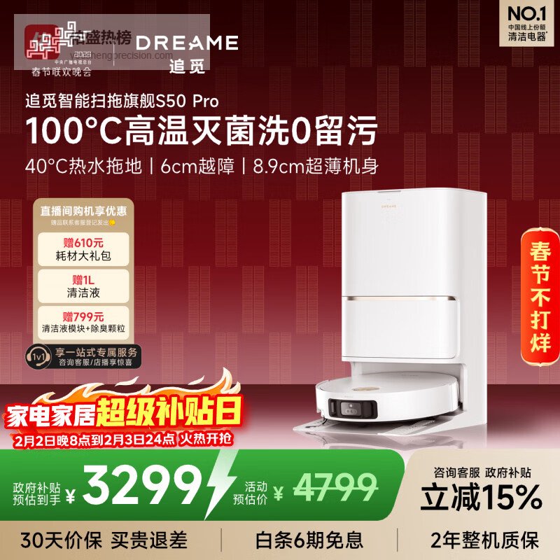 【京东自营】追觅S50Pro扫地机器人扫拖一体自动清洗全自动基站自清洁扫地拖地机器人水箱版RLS46¥