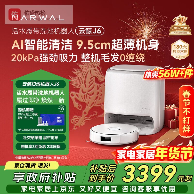 【京东自营】云鲸【旗舰爆款】扫地机器人J6热活水履带洗地机扫拖一体自动清洗全自动洗拖吸尘擦地机水箱版¥