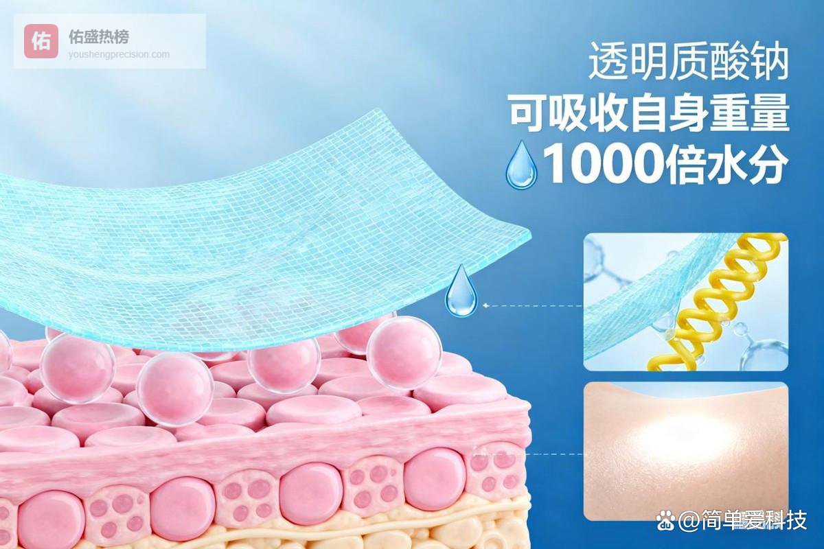 胶原纤维的合成与维持,离不开一个湿润的“施工环境”。这就是透明质酸钠的舞台。福品颂选用的透明质酸钠,源自全球知名的生物科技公司华熙生物,其品质与纯度有充分保障。它如同一位高效能的“海绵与水渠工程师”,拥有携带自身重量数百倍水分的能力。它不仅能吸附于皮肤表面形成锁水膜,防止水分蒸发,更重要的是,一些小分子透明质酸可以渗透至真皮层,在胶原纤维和弹性纤维周围形成富含水分的“水合鞘”。这就像为钢筋(胶原)提供了湿润的养护环境,使其结构更加稳固、排列更加有序,从而让肌肤从内透出水光感,同时让皮肤的饱满度和光泽度得到显著提升。