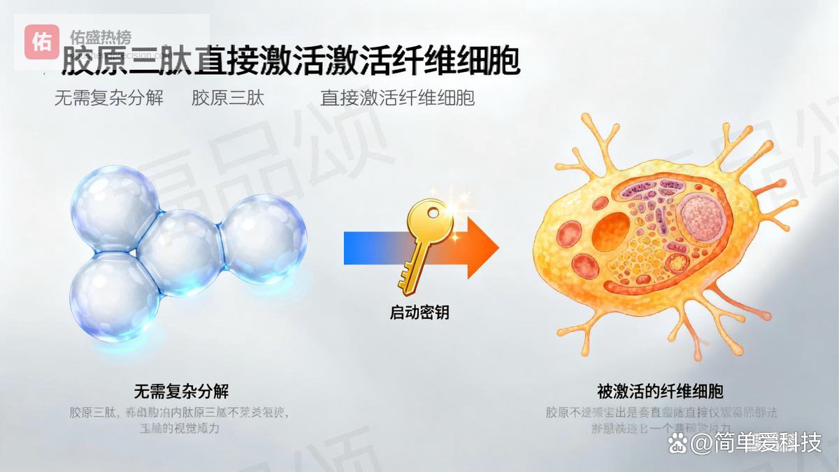 如果说前两者是提供“砖瓦”的工匠,那么胶原三肽就是下达“建造指令”的指挥官。它是由甘氨酸脯氨酸羟脯氨酸构成的特定短链序列,无需分解即可被直接吸收。科学研究发现,这个小小的三肽片段本身就是一种高效的生物信号,能够精准地“敲门”告诉皮肤深层的成纤维细胞:“是时候加速工作了!”它能显著提升细胞合成自身胶原蛋白、透明质酸的能力,从源头激活肌肤的再生引擎,实现由内而外的“自体焕新”。