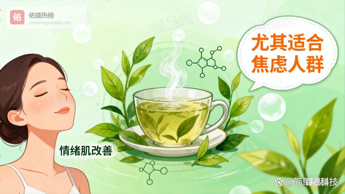 茶叶茶氨酸(绿茶茶氨酸):它像一位“情绪舒缓师”,来源于天然绿茶,可以帮助缓解精神紧张,降低因压力产生的皮质醇。过高的皮质醇会分解胶原,因此茶氨酸从神经层面为胶原的留存创造了平和的内环境。