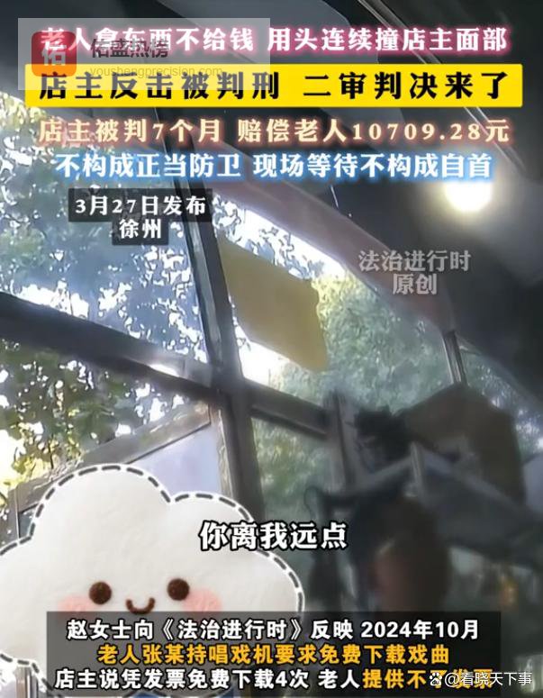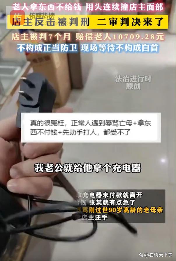一片唏嘘!江苏苏州,一老人进店免费下载歌曲未果,就要把店里的充电器拿走,老板提醒他要付款,结果老人用头连续顶撞店主面部,还辱骂店主过世的母亲,店主忍无可忍反击,结果却被判刑+赔偿。法院:不构成正当防卫