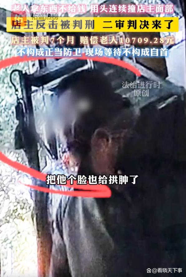 老人拿东西不给钱用头撞店主面部,店主反击后被判7个月
