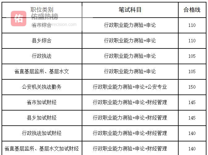 江西省公务员局按职位类别分别划定合格分数线,具体见下图。