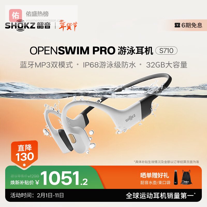 【京东自营】韶音OpenSwimProS710骨传导耳机蓝牙无线运动耳机开放式游泳跑步骑行不入耳熊猫¥