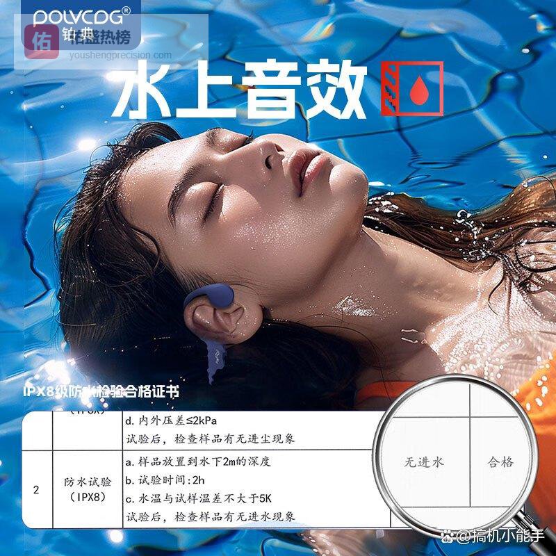 该耳机具有优越的防水性能,防水等级达到IPX8,确保用户在水下也能享受到音乐的乐趣。此外,超长续航特性更是让无论是日常锻炼还是专业游泳训练,都可以放心使用,无需频繁充电,尽情享受运动与音乐的完美结合。