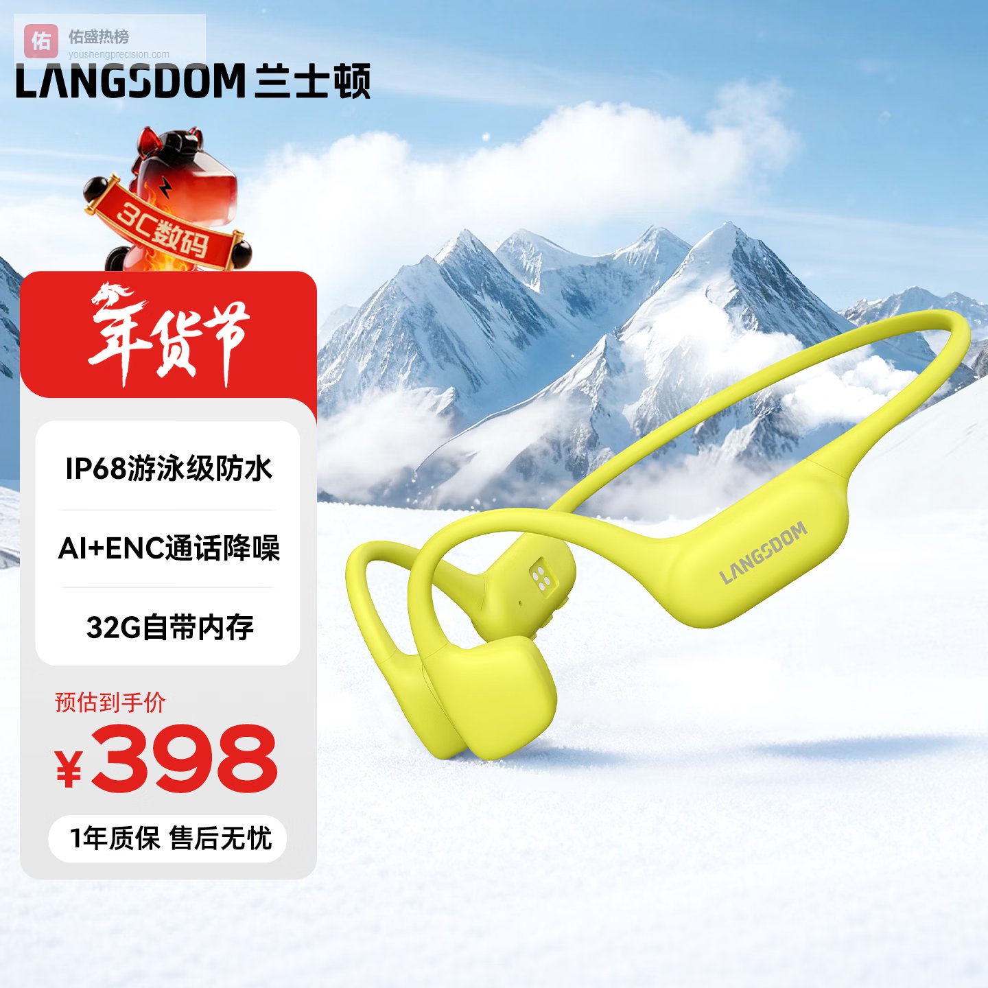 【京东自营】兰士顿AirSwimNeo骨传导耳机开放式游泳蓝牙耳机运动跑步骑行防水不入耳无线耳机蝶黄¥