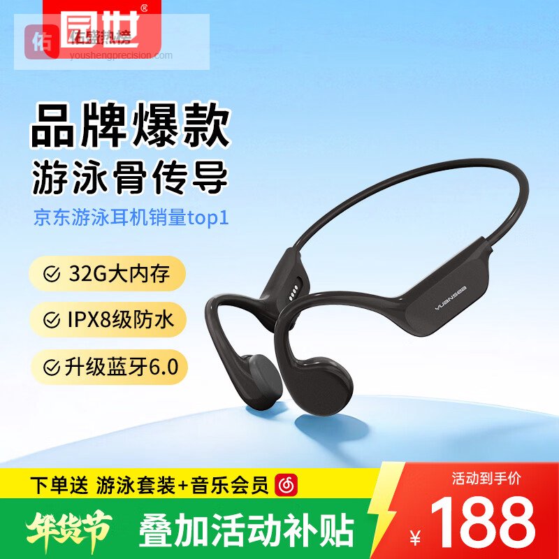 【京东自营】园世X7第二代骨传导蓝牙耳机不入耳开放式运动耳机IPX8防水32G内存MP3游泳跑步骑行¥