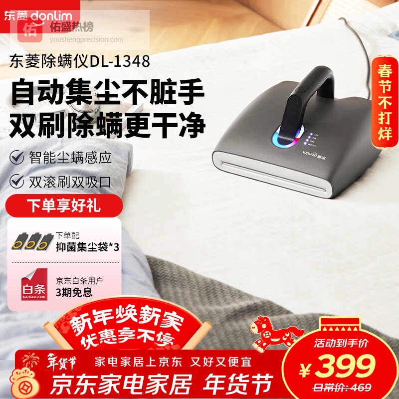 【京东自营】东菱除螨仪床宝家用手持除螨大吸力吸尘器双拍打智能尘螨感应可替换集尘袋自集尘除螨神器DL-¥